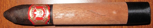 The Toro is a firm, heavy cigar with a highly mottled, heavily veined exterior leaf. A closer inspection reveals several soft spots, but the oily cigar seems to be otherwise well-constructed. A muted aroma of leather and cocoa is evident off the foot, and the cigar cuts cleanly to reveal a smooth draw.